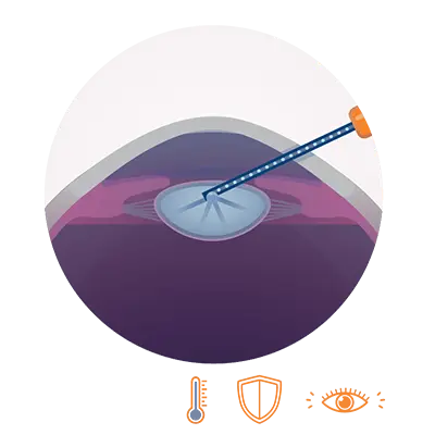Der Vorteil: Der Nanolaser ist ein Kaltlaser und gibt keine Hitzeenergie ins Auge ab. Somit können keine Hitzeschäden entstehen. Die Energieabgabe erfolgt in einem kleineren Bereich und kann somit viel präziser dosiert und gesteuert werden. Bei der Methode mit dem Nanolaser werden Einmalinstrumente verwendet – so ist höchste hygienische Sicherheit gewährleistet.